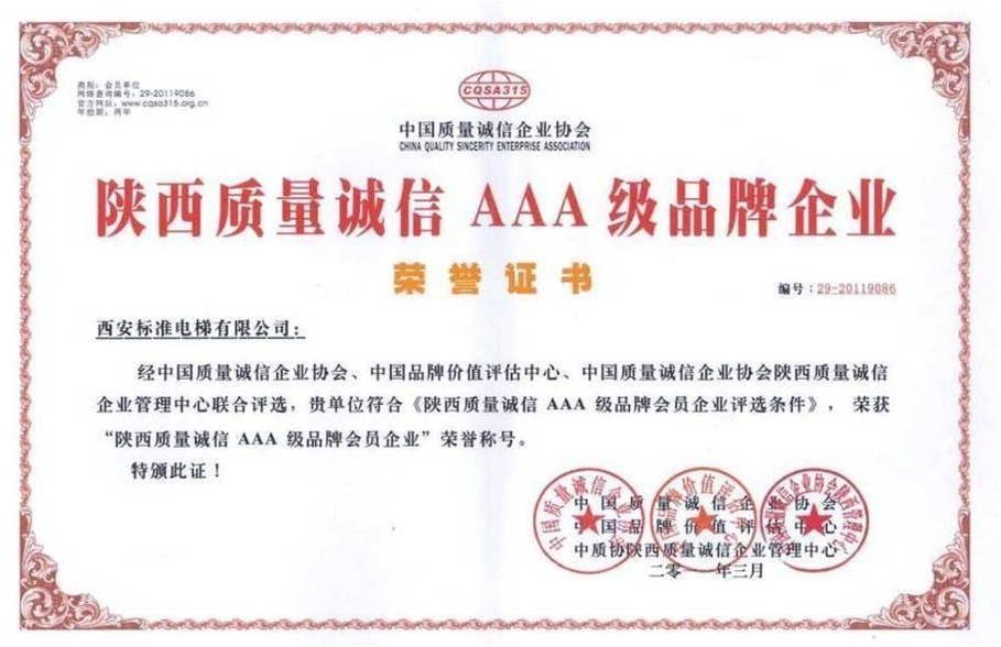陜西質(zhì)量誠(chéng)信AAA級(jí)品牌公員企業(yè)